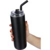 Die Thermoflasche mit 500 ml Volumen ist der ideale Imageträger für Ihr Unternehmen. Mit ihrem eleganten, mattschwarzen Design aus hochwertigem Edelstahl verkörpert sie Qualität und Stil. Ob beim Meeting, im Fitnessstudio oder unterwegs – Ihre Marke wird überall gesehen. Das doppelte Edelstahlwand-Design garantiert, dass Getränke bis zu 15 Stunden heiß bleiben, während der stilvolle Look und die funktionalen Deckel einen praktischen täglichen Gebrauch ermöglichen.